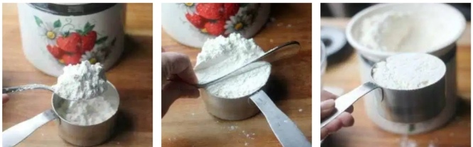 1. Cedok bahan dengan sudu. Tidak boleh dicedok langsung dengan cup.
